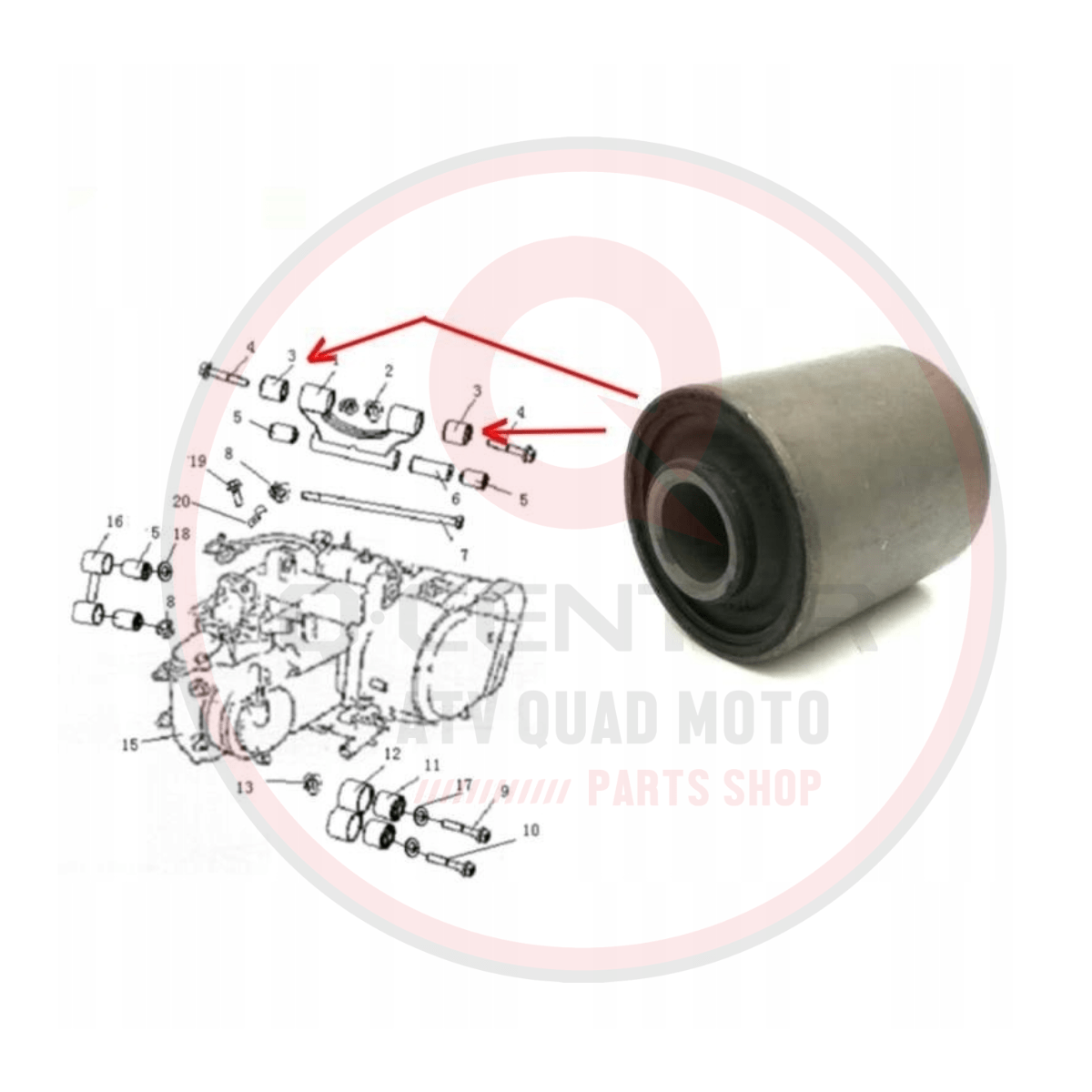 Zamjenska čahura nosača motora za ATV vozila Linhai. Ova gumeno-metalna čahura služi za stabilizaciju motora i smanjenje vibracija između motora i rama vozila. Idealna je za zamjenu dotrajalih ili oštećenih originalnih dijelova.