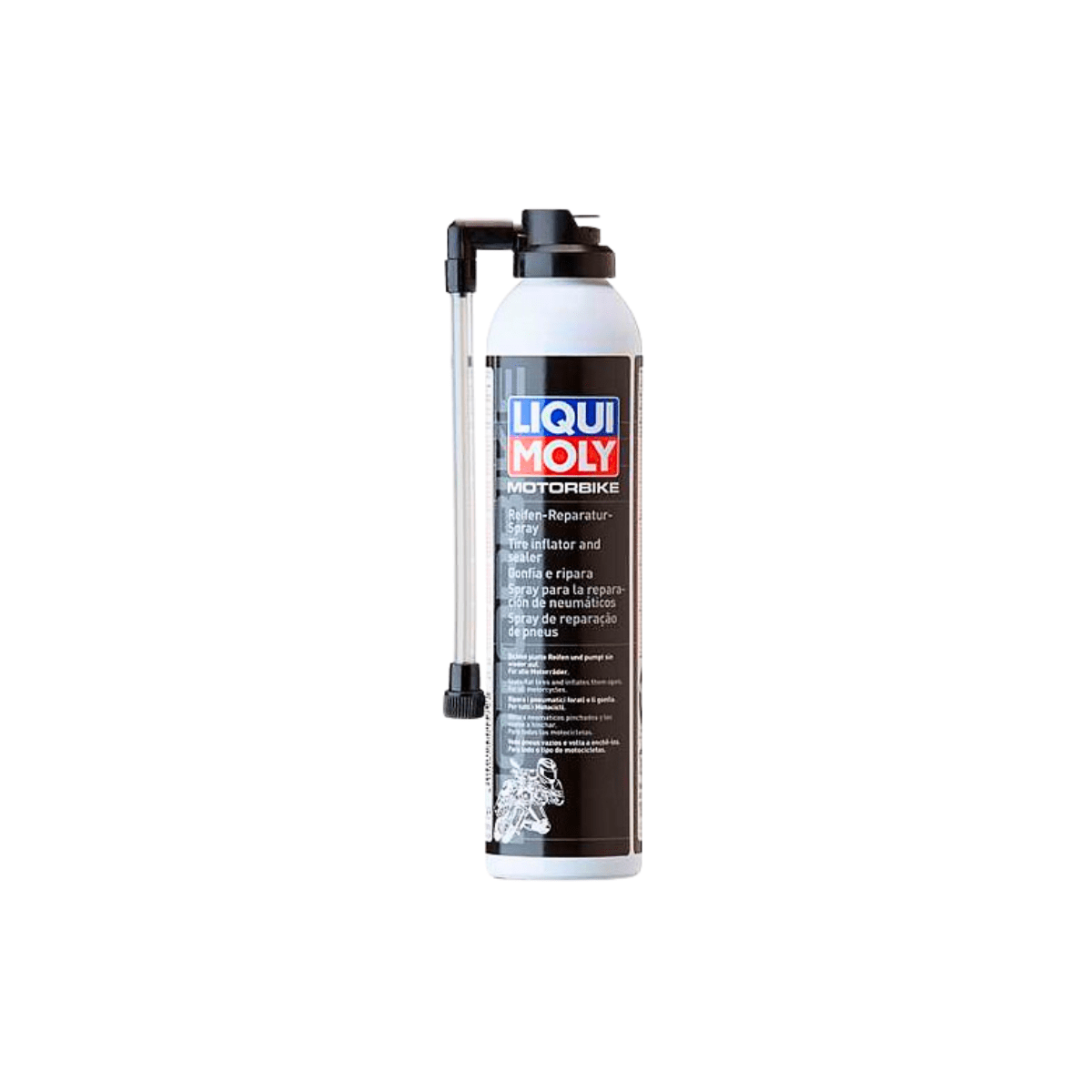 Liqui Moly Motorbike Tire Inflator & Sealer je praktičan sprej za krpljenje guma koji omogućava brzu i privremenu popravku probušene gume direktno na putu. Sredstvo zaptiva manja oštećenja i istovremeno vraća dio pritiska, što omogućava siguran nastavak vožnje do servisa. Pogodno za gume sa ili bez unutrašnje zračnice. Nije namijenjeno za veća oštećenja, bočne pukotine ili gume koje su skliznule s felge.
