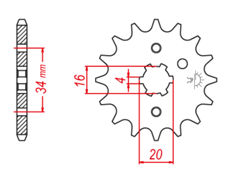 Prednji lančanik 11 zuba 428 za Yamaha SR, TZR, XT, XTZ i YBR predstavlja kvalitetnu i izdržljivu zamjenu za originalni pogonski lančanik. Ovaj model je izrađen od visoko-čvrstog legiranog čelika, posebno razvijenog za motocikle koji koriste standard 428 lanca.