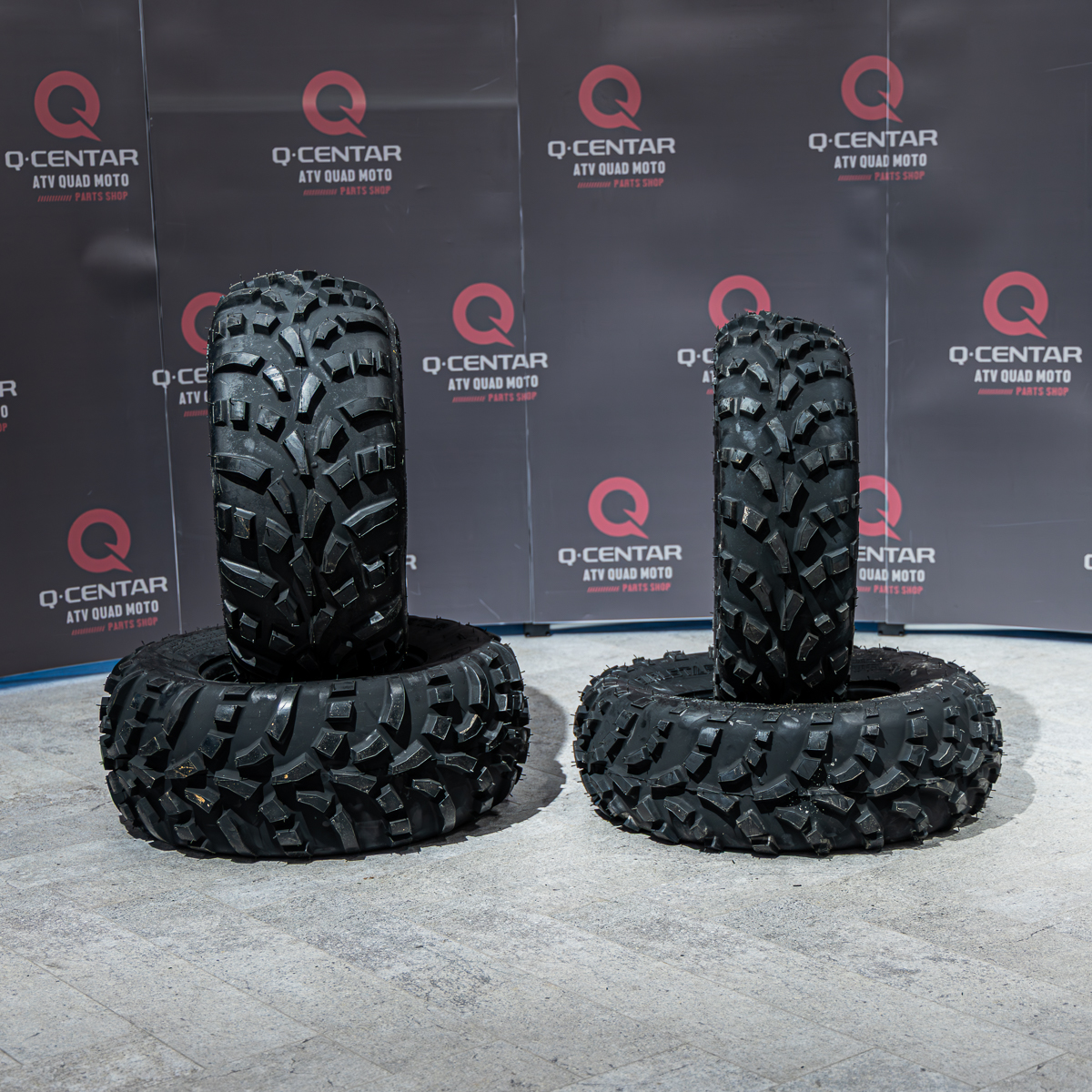 2x 25×10.00-12 (255/65-12), indeks nosivosti 67K (do 307 kg, max. 110 km/h)