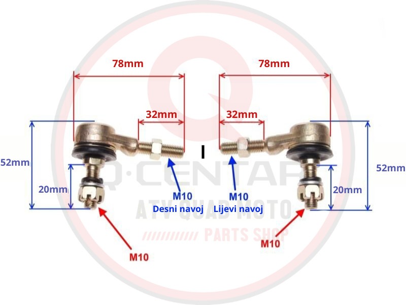 Set krajnica ATV 110 125 150 200 Lijevi Desni navoj namijenjen je za precizno upravljanje i stabilnost upravljačkog sistema. Pogodan je za dječije i manje ATV modele.