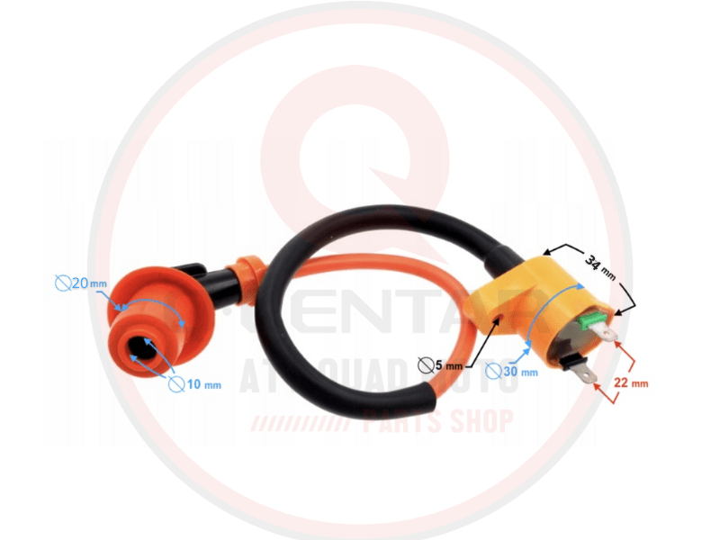 Zavojnica paljenja bobina GY6 4T 125/150 ATV skuter predstavlja poboljšanu, tuning verziju standardne bobine i namijenjena je svim kineskim skuterima, motociklima i ATV/quad vozilima koji koriste GY6 4T motore zapremine 125 cc i 150 cc. Zahvaljujući jačoj iskri i kvalitetnijem paljenju, ova zavojnica doprinosi boljem ubrzanju, lakšem paljenju motora i stabilnijem radu u svim režimima.